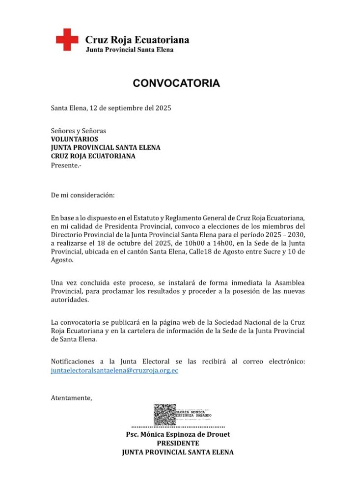 Correo Junta Electoral: juntaelectoralsantaelena@cruzroja.org.ec