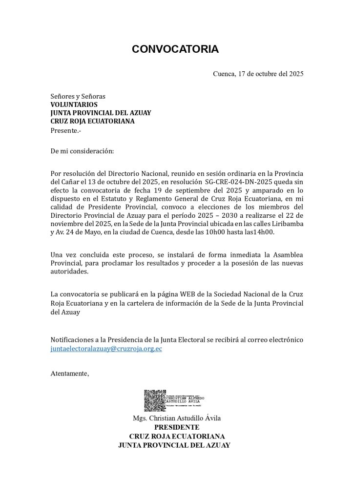 Correo Junta Electoral: juntaelectoralazuay@cruzroja.org.ec