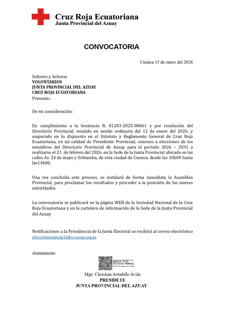 Correo Junta Electoral: eleccionesazuay26@cruzroja.org.ec